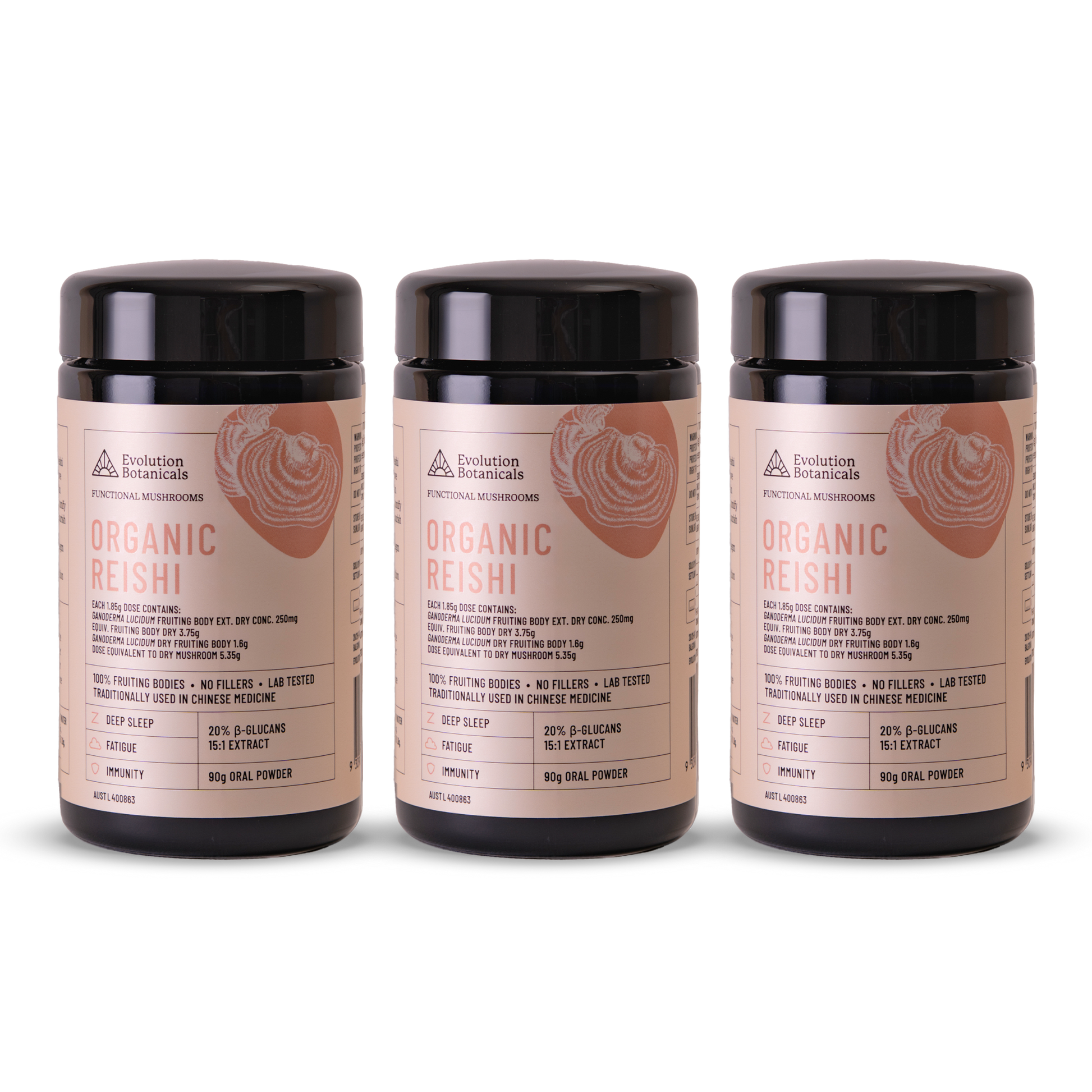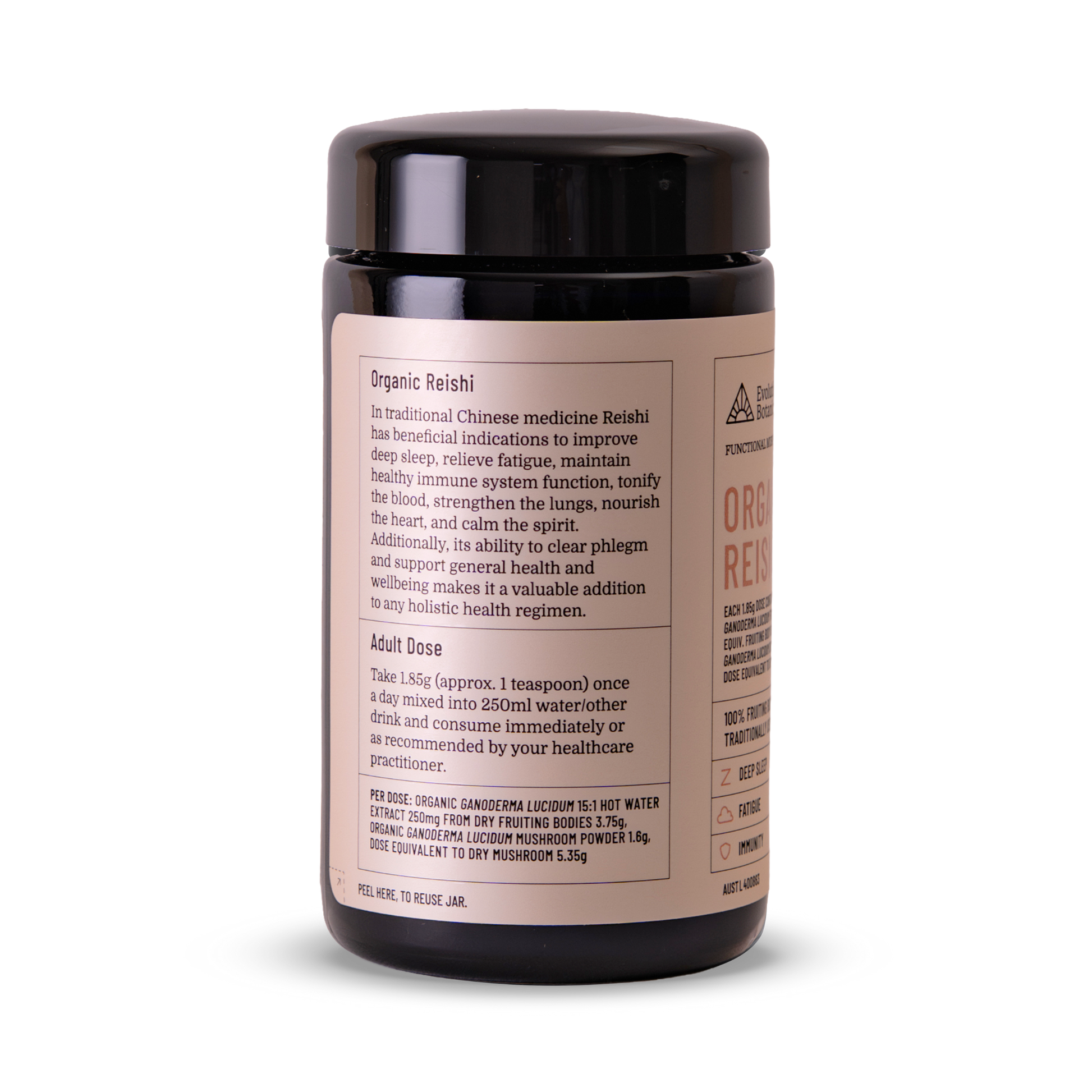 Calm the spirit and improve sleep with Organic Reishi mushroom extract powder. Crafted from 100% fruiting bodies & rich in 20%+ beta-glucans & active compounds, it improves deep sleep, maintains the immune system, & relieves fatigue. Certified Organic, Australian tested, with no fillers, experience the full spectrum benefits of this adaptogen known as the “Spirit Plant.”